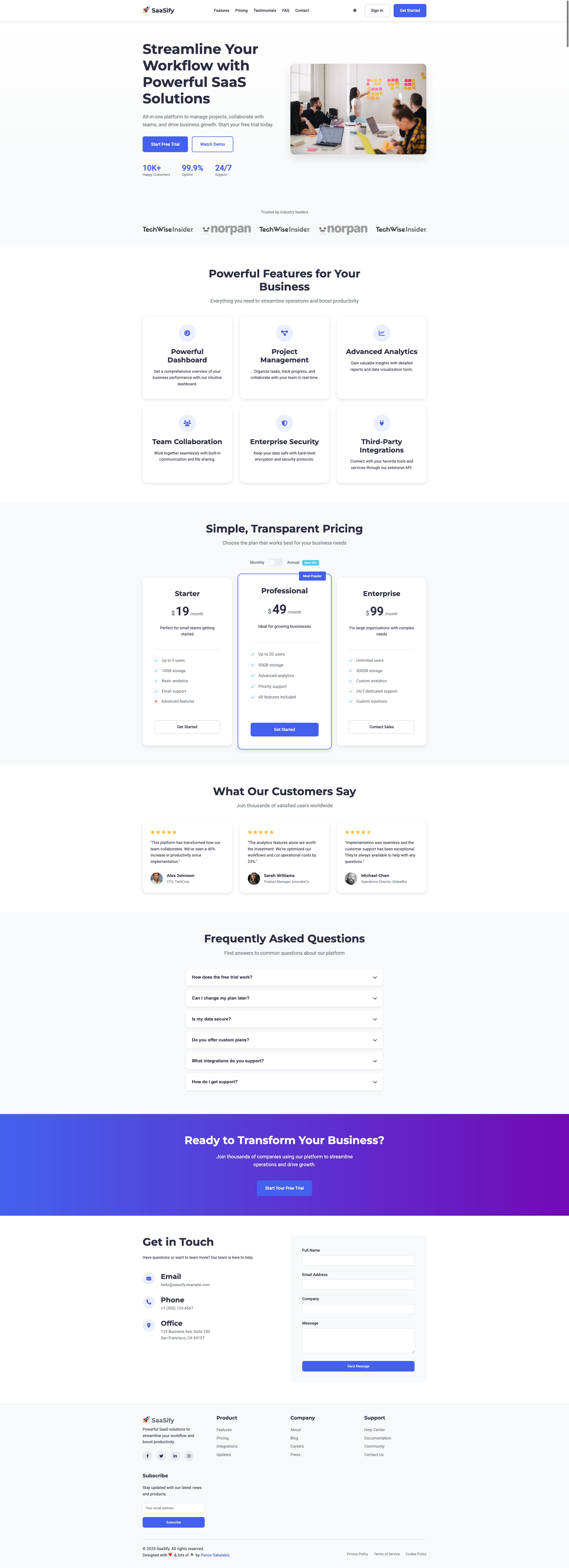 SaaSify – Modern HTML, CSS & JavaScript SaaS Landing Page Template