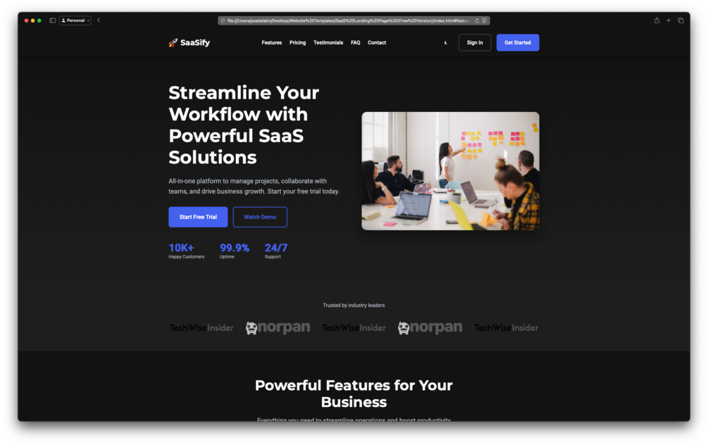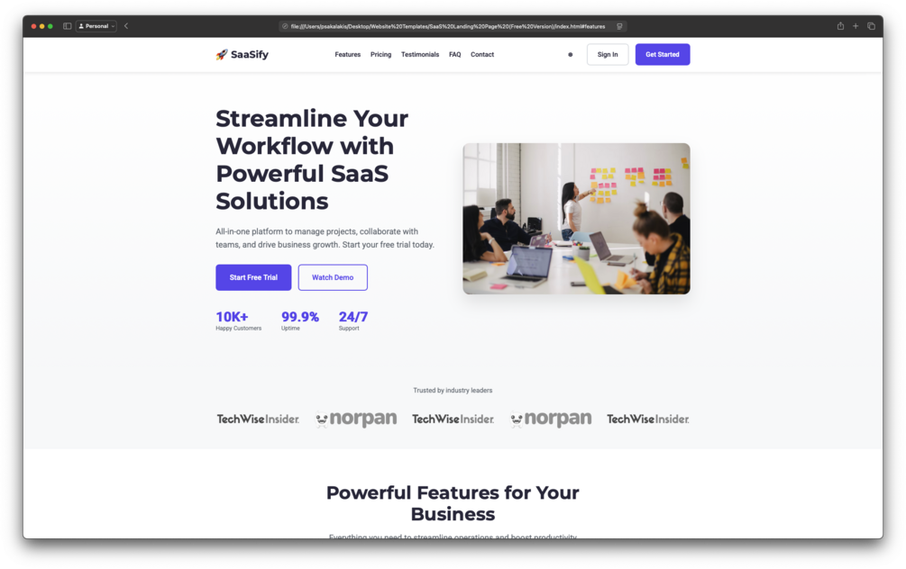 SaaSify – Modern HTML, CSS & JavaScript SaaS Landing Page Template