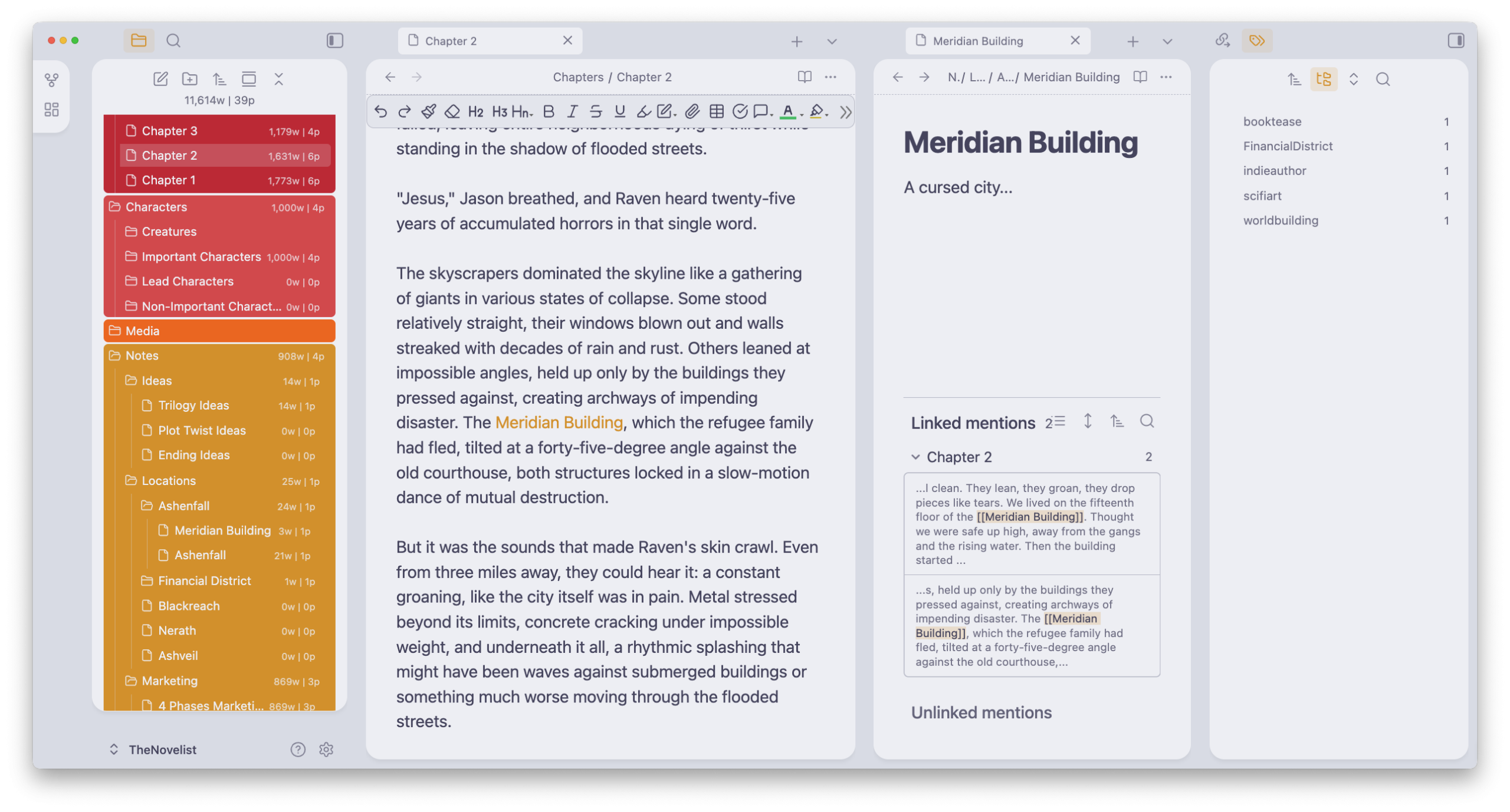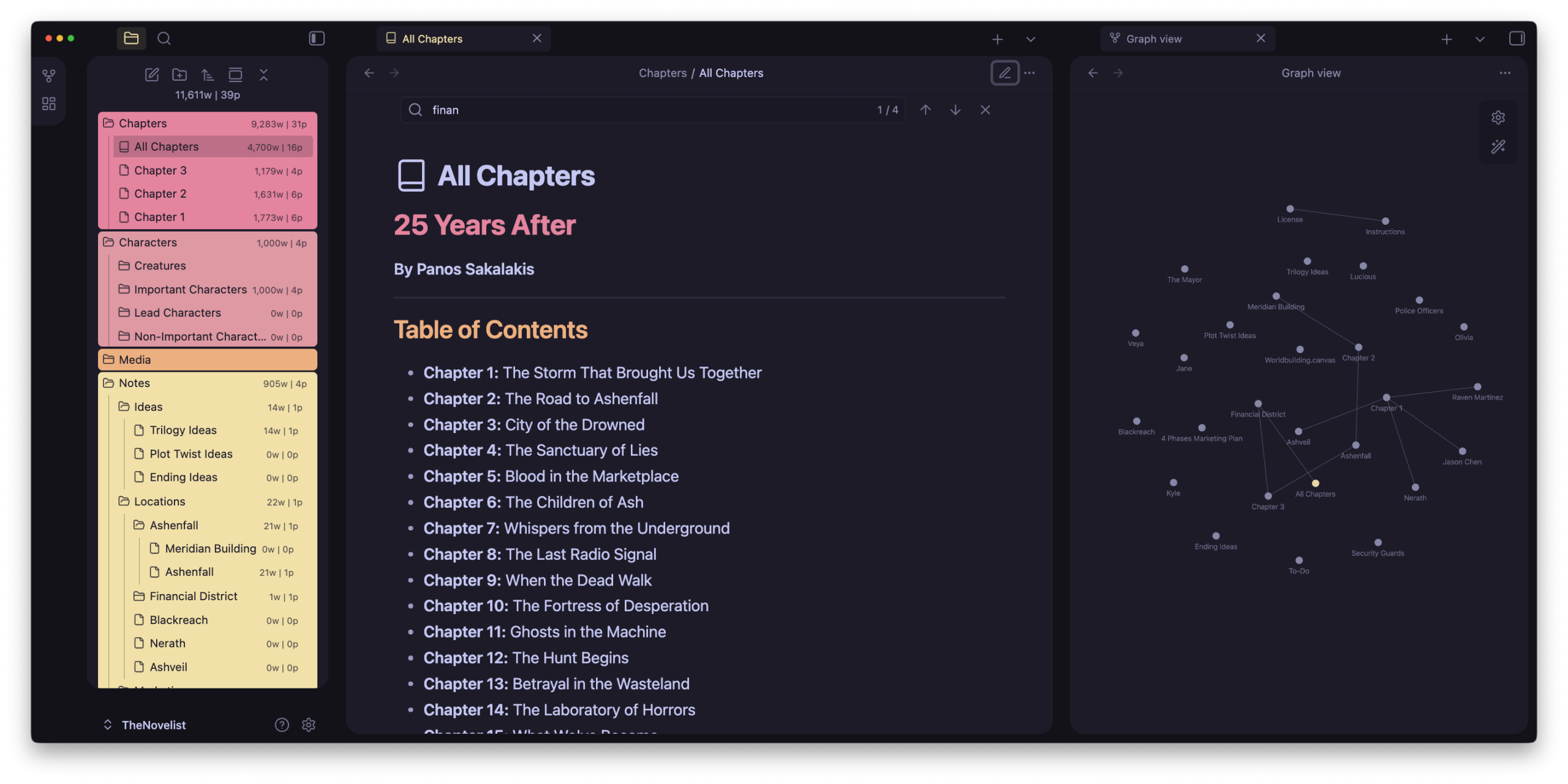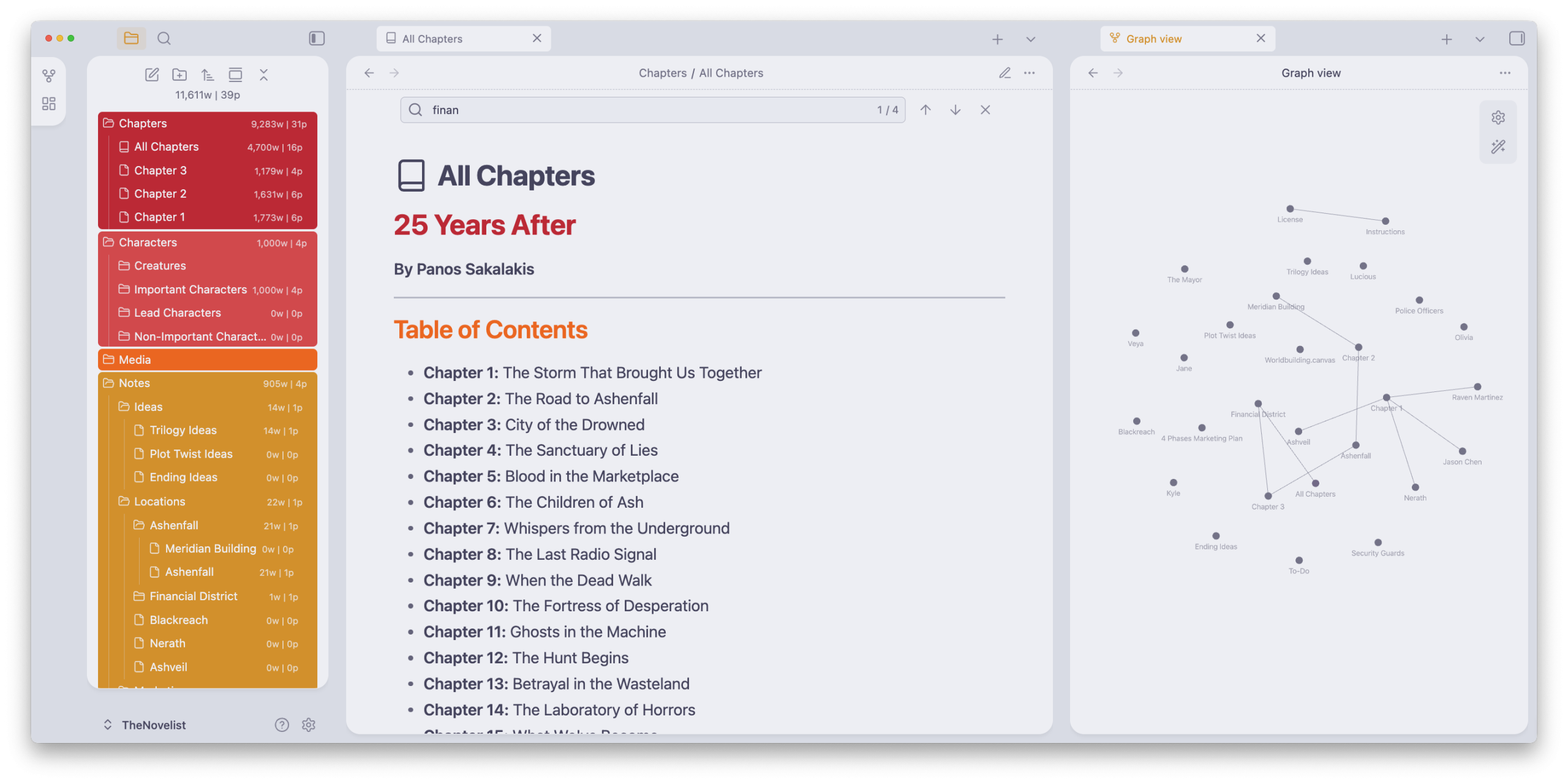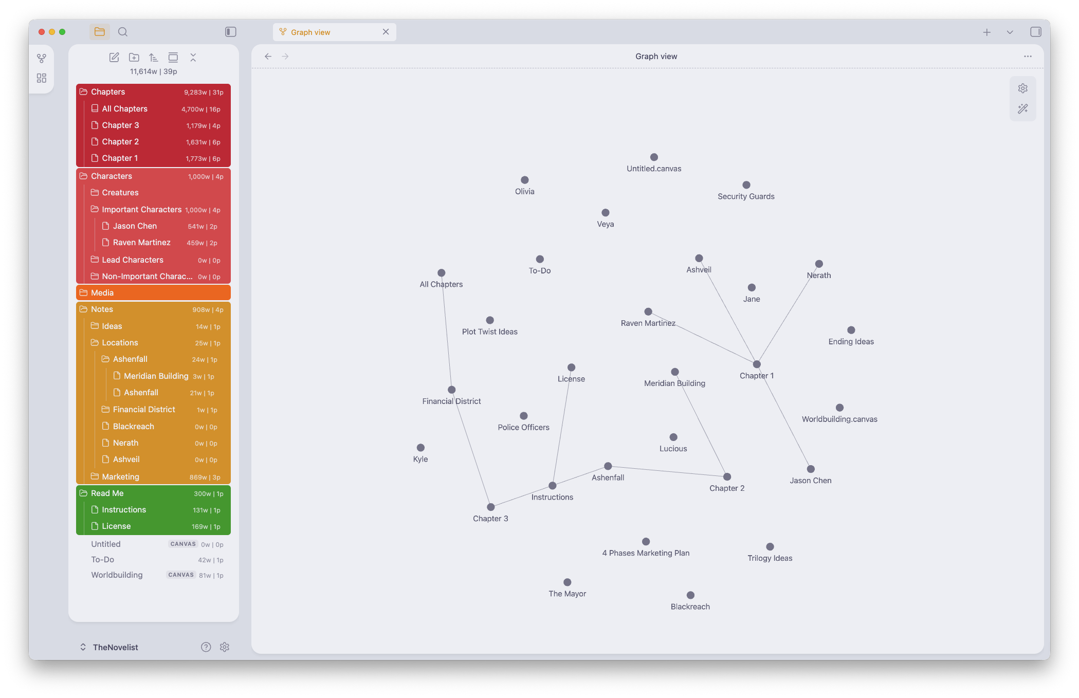 Start your next novel more organized and easier than ever before with The Novelist, a minimal, colorful, and free Obsidian Vault for novelists and writers. Quickly build your world, including your characters and locations, notes and ideas, and schedule everything using the Kanban boards.